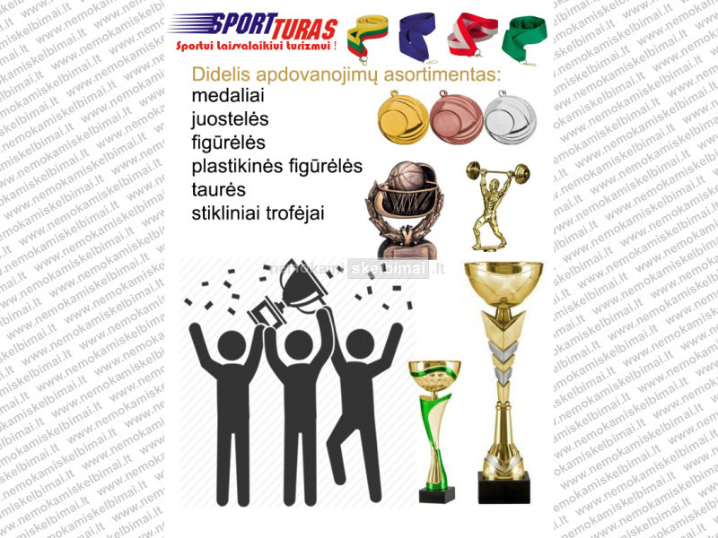 Prekiaujame įvairiais sportiniais apdovanojimais: taurėmis, medaliais, juostelėmis, stikliniais trofėjais, figūrėlėmis.