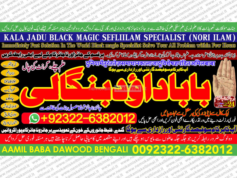 Amil Baba Dawood Bangali { PAK: 0322-6382012 ---- UAN: 0092-322-6382012} is a renowned spiritual healer and master of ancient occult sciences, specializing in Black Magic, Sephi Ilam, Nori Ilam, and Voodoo Spells. With decades of experience in the mystical arts, he has gained a reputation as a powerful and trusted guide for those seeking solutions to life's most challenging problems.