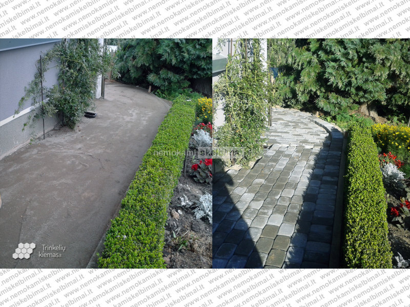 Trinkelėmis išklotas kiemas, takai, aikštelės, įvažiavimas, šaligatviai – tvirta ir ilgaamžė paviršiaus danga. Trinkelių kiemas atrodo tvarkingai, yra lengvai prižiūrimas, estetiškas ir patogus. Tačiau tam, kad grindinys atrodytų nepriekaištingai ir tarnautų ilgai, būtina suderinti kokybiškas medžiagas ir darbus atlikti kruopščiai bei atidžiai, naudojant tinkamas technologijas. Pagrindinė mūsų veikla - trinkelių klojimas, bortų statymas, laiptų iš trinkelių darymas ir kiti kiemo gerbūvio darbai.