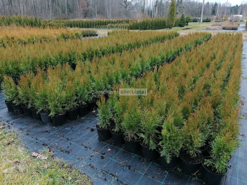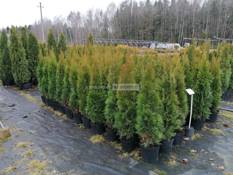 Vakarinė tuja Smaragd kainos ir aukščiai vazonuose