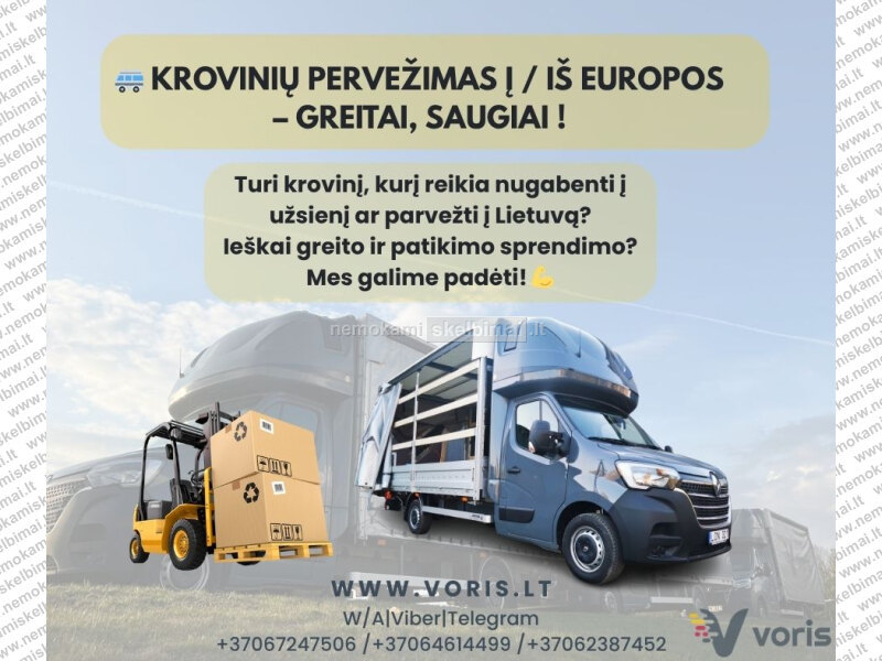 Tarptautiniai perkraustymai! Krovinių Pervežimas ! Skubių Krovinių Pervežimas ! Perkraustome butų, namų, biurų baldus, buitinę techniką, nestandartini