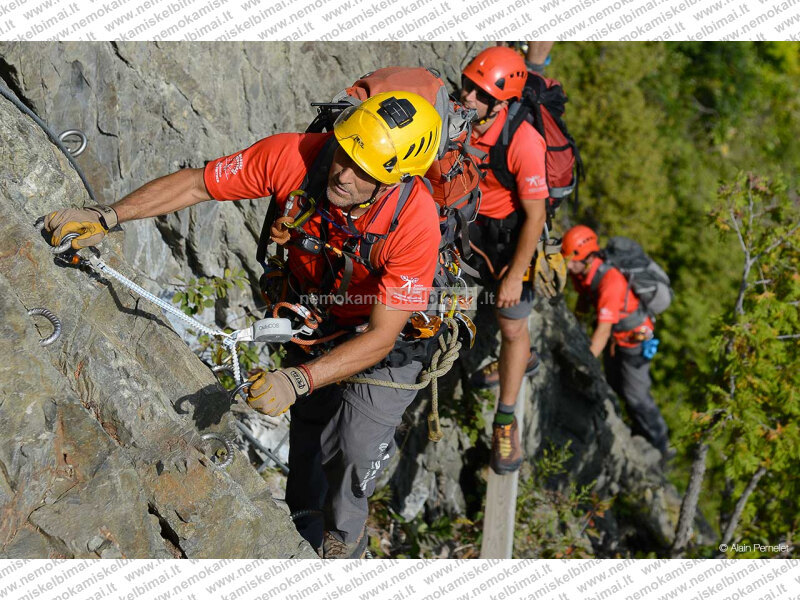 Įranga Via ferrata trasoms, alpinizmui, žygiams.