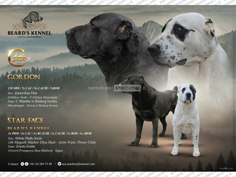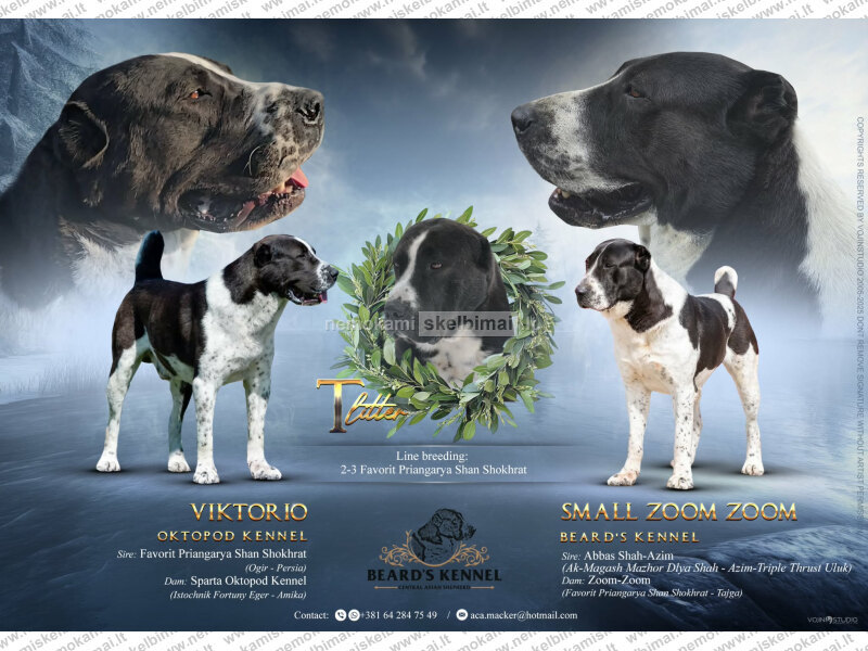 Galimi gražūs Vidurio Azijos aviganio šuniukai iš dviejų vadų. Jų tėvai yra patikrinti dėl sveikatos, anatomiškai ir charakteriu nepriekaištingi, turintys puikius parodų rezultatus.