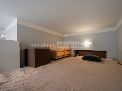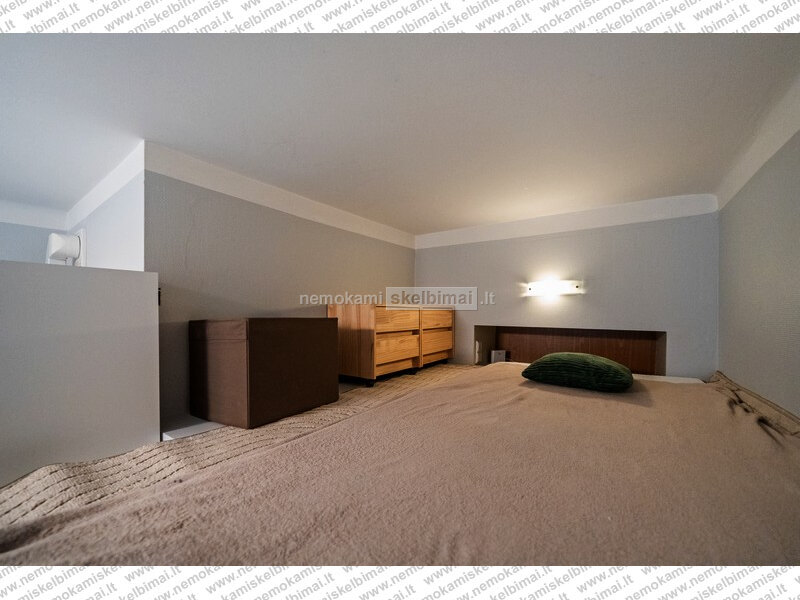 Butas nedidelis, bet vizualiai kur kas erdvesnis dėl aukštų lubų ir didelių langų. Patogi sofa-lova ir antresolėje komfortui sukurta vieta miegui.