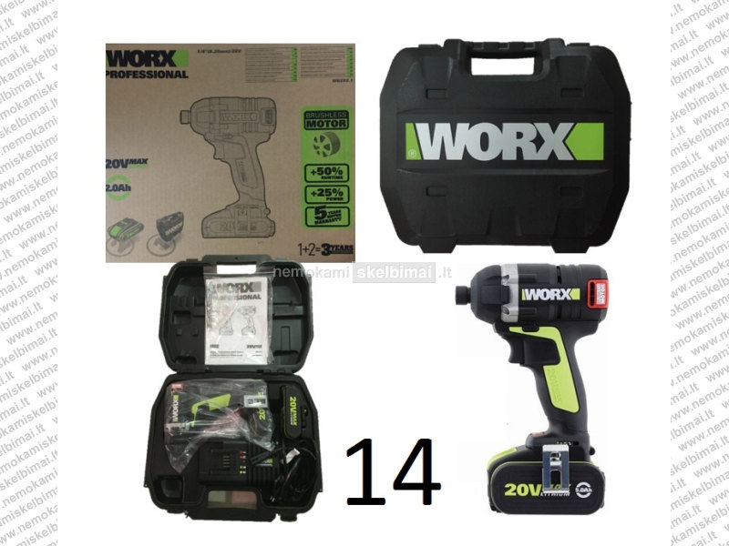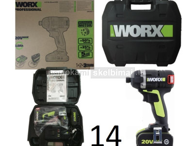 14.Worx Professional WU292 Smuginis veržliaraktis Li-Ion 20V/ 5,0aH Kaina: 279e