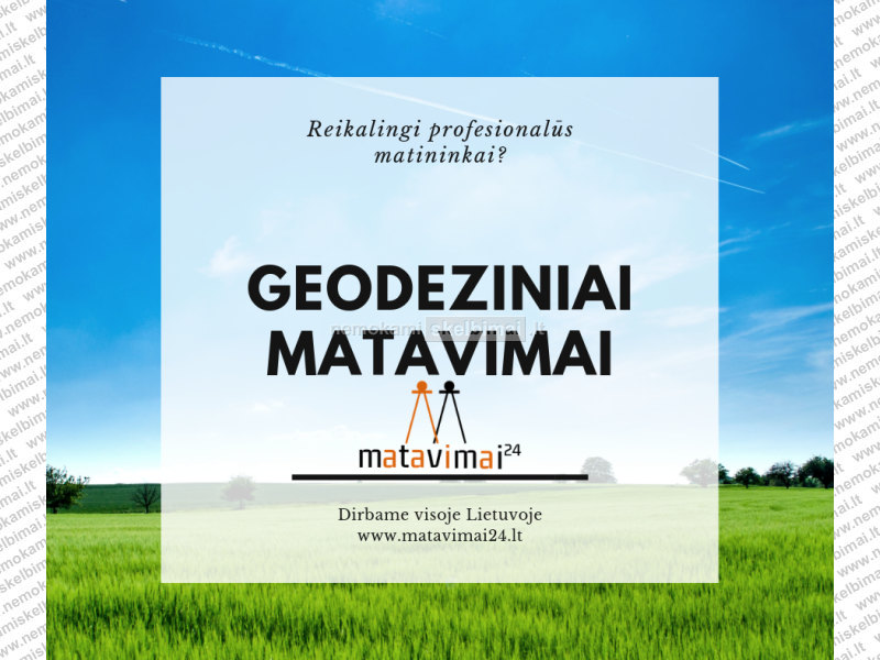 www.matavimai24.lt – tai patyrę, ilgamatę darbų patirtį turintys matininkai, atliekantys visus su geodezija susijusius darbus. Pas mus atliekami visi geodeziniai matavimai (kadastriniai matavimai), profesionaliai parengiama topografinė nuotrauka ir teikiamos visos, su geodezija susijusios konsultasijos. Patikėkite savo projektus mums, nes tik profesionalūs matininkai gali užtikrinti per trumpiusią laiką atiekamų darbų kokybę. Kas tai bebūtų: topografinė nuotrauka, kadastriniai matavimai, dar kitaip vadinami geodeziniai matavimai, ar tiesiog pagalba sprendžiant su žemės sklypu susijusius klausimus, mes padėsime jums bet kurioje situacijoje. Nepamirškite, kad topografinė nuotrauka būtina prieš pradedant projektavimo darbus, todėl verta pasikonsultuoti su matininkais prieš bet kokių darbų pradžią, siekiant išvengti klaidų, kurios gali brangiai kainuoti ateityje. Tinkamai atlikti kadastriniai matavimai dažnai sutaupo ne tik laiko ir pinigų, bet ir padeda išvengti bereikalingų dviprasmiškų situacijų su kaimynais ar bendrasavininais. Geodeziniai matavimai privalo būti atikti tik nepriekaištingų, matininko pažymėjimą turinčių specialistų, todėl visada patariame įvertinti pasirinkto specialisto patirtį ir reputaciją. Primename, kad topografinė nuotrauka galioja tik vienerius metus, todėl jei turite senesnę nei 1 metai topografinę nuotrauką ir norite pradėti projektavimo darbus, teks ją užsakinėti iš naujo. www.matavimai24.lt – tai jūsų geriausias sprendimas, kad ir kas jus domina: kadastriniai matavimai, topografinė nuotrauka, ar tiesiog gero specialisto konsultacija.