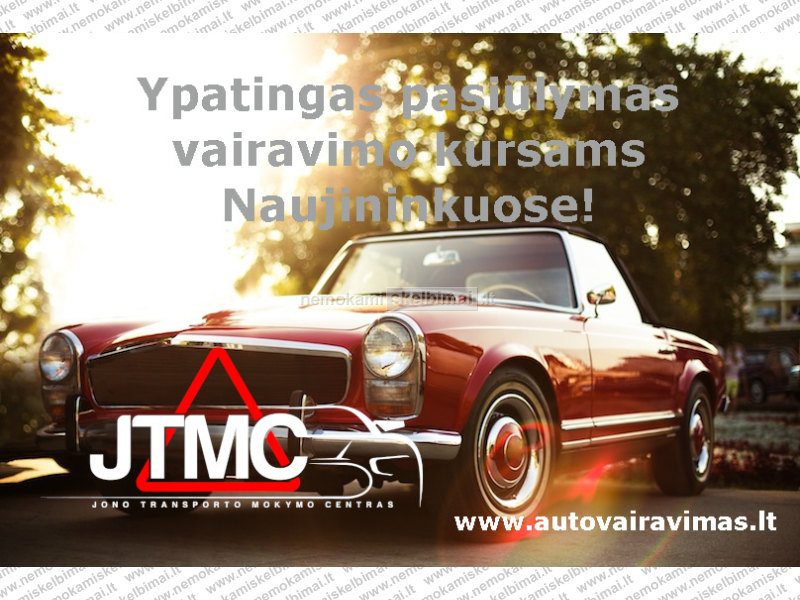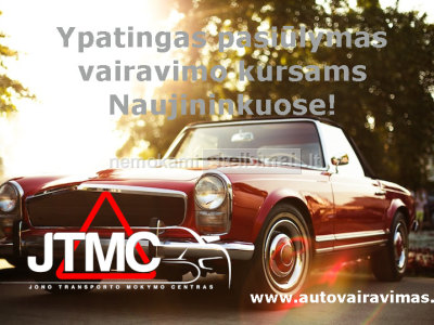 UAB "JTMC" vairavimo mokykla skelbia ypatingą pasiūlymą būtent Jums, Jūsų draugams, artimiesiems ar kaimynams. Visus norinčius išmokti taisyklingo ir saugaus vairavimo kviečiame į vairavimo kursus už specialią kainą.